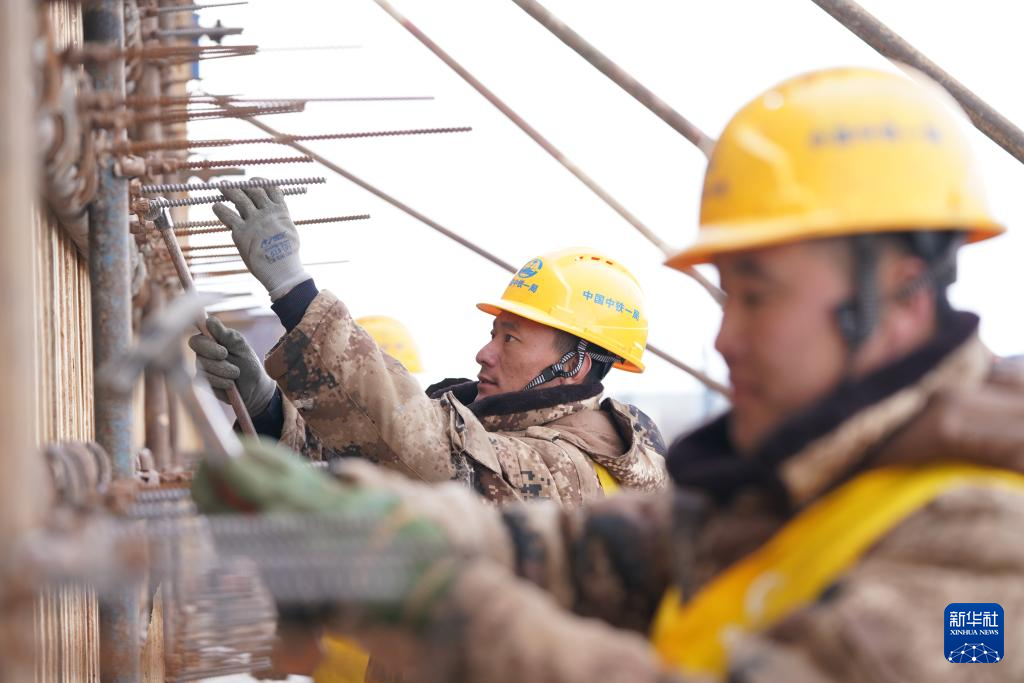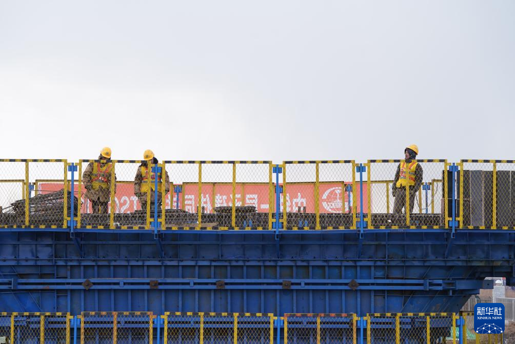 3月29日、黒竜江省の佳木斯-同江鉄道能力増強改修事業の建設現場で働く作業員。(佳木斯=新華社記者/王松)pagebreak