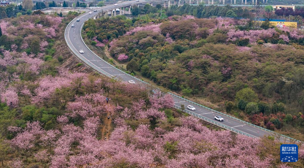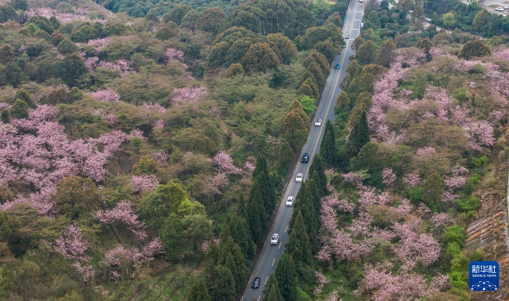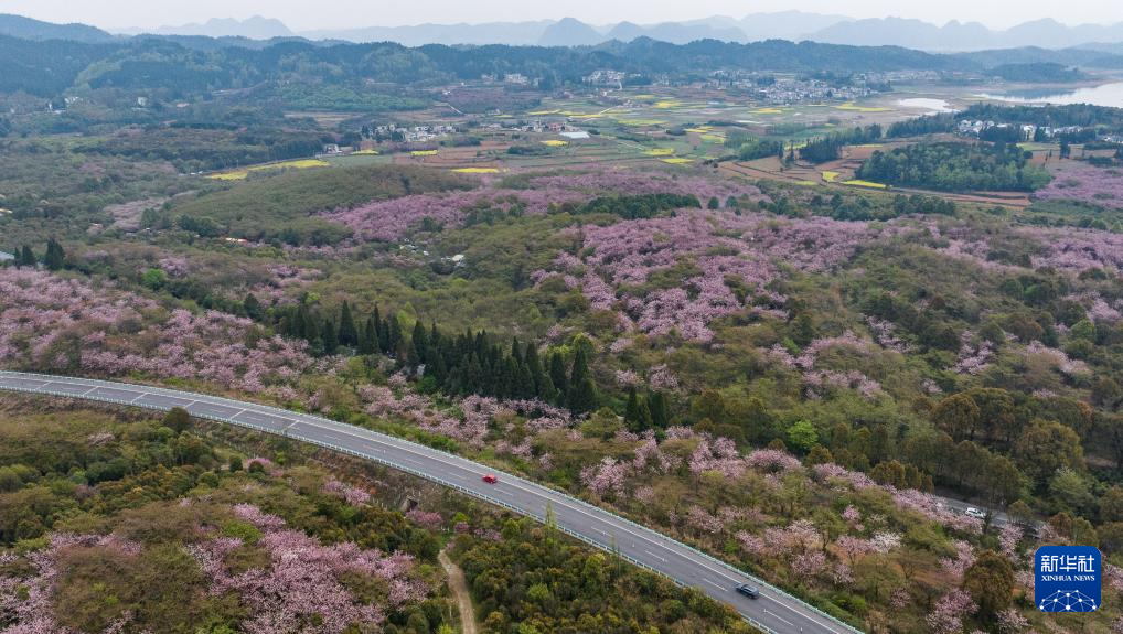 【新華社貴陽4月7日】中国貴州省清鎮市紅楓湖鎮ではこのところ、桜やカイドウの花が道路脇で競うように咲き誇っている。多くの人が春の陽気の中で自然を満喫するために訪れている。pagebreak