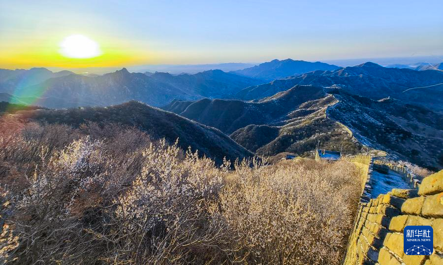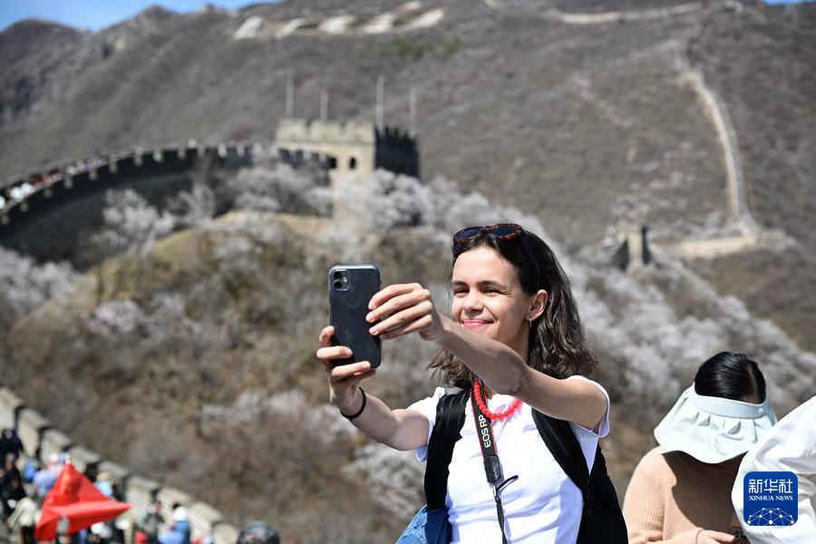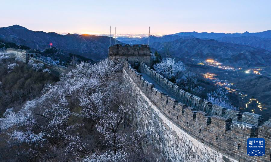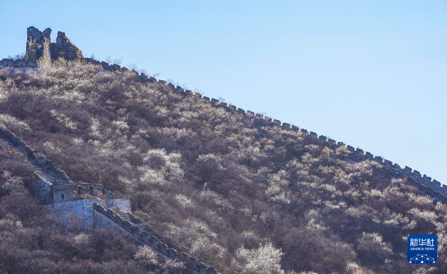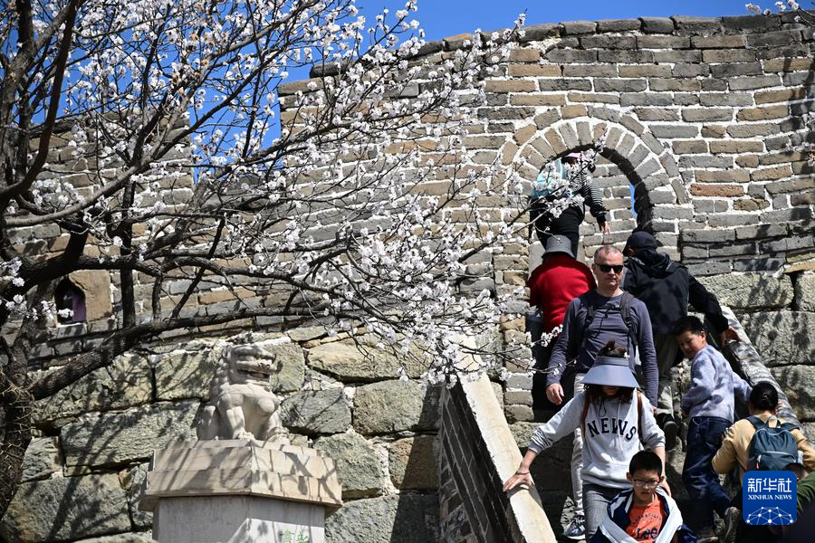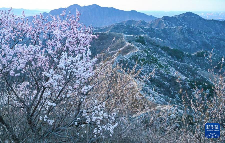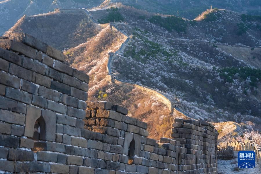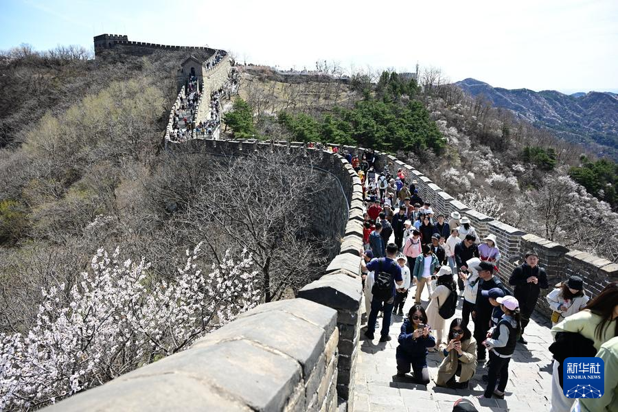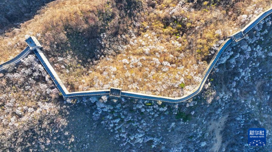 【新華社北京4月8日】中国北京市懐柔区の慕田峪長城から箭扣(せんこう)長城にかけて、春の花々が咲き乱れ、雄大な万里の長城に優しさを添えている。