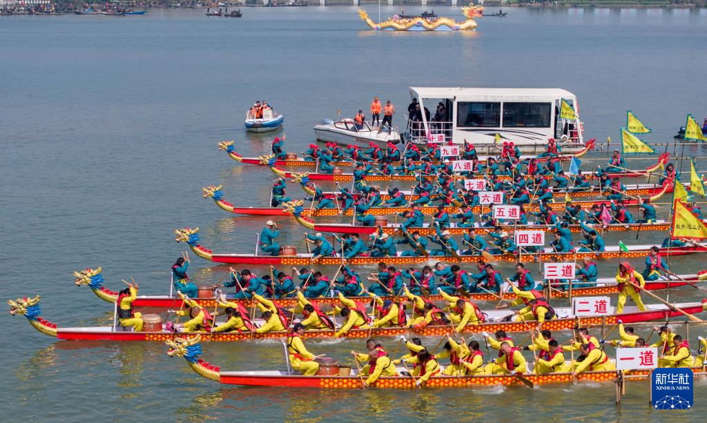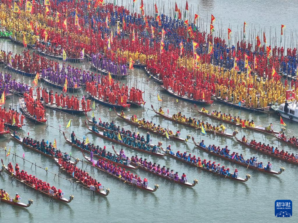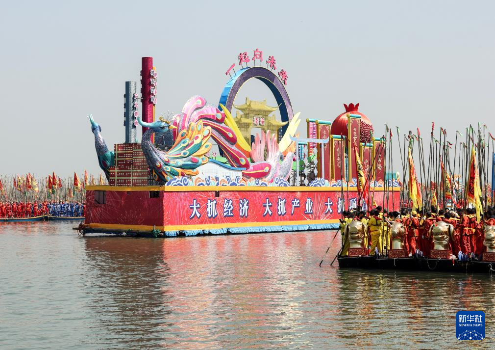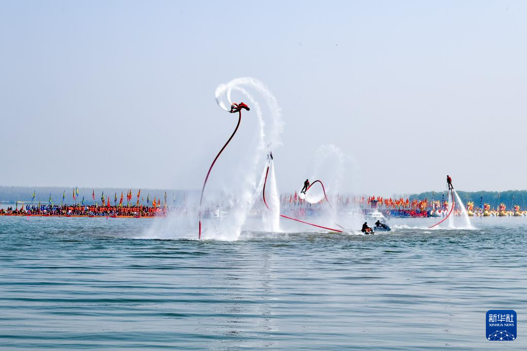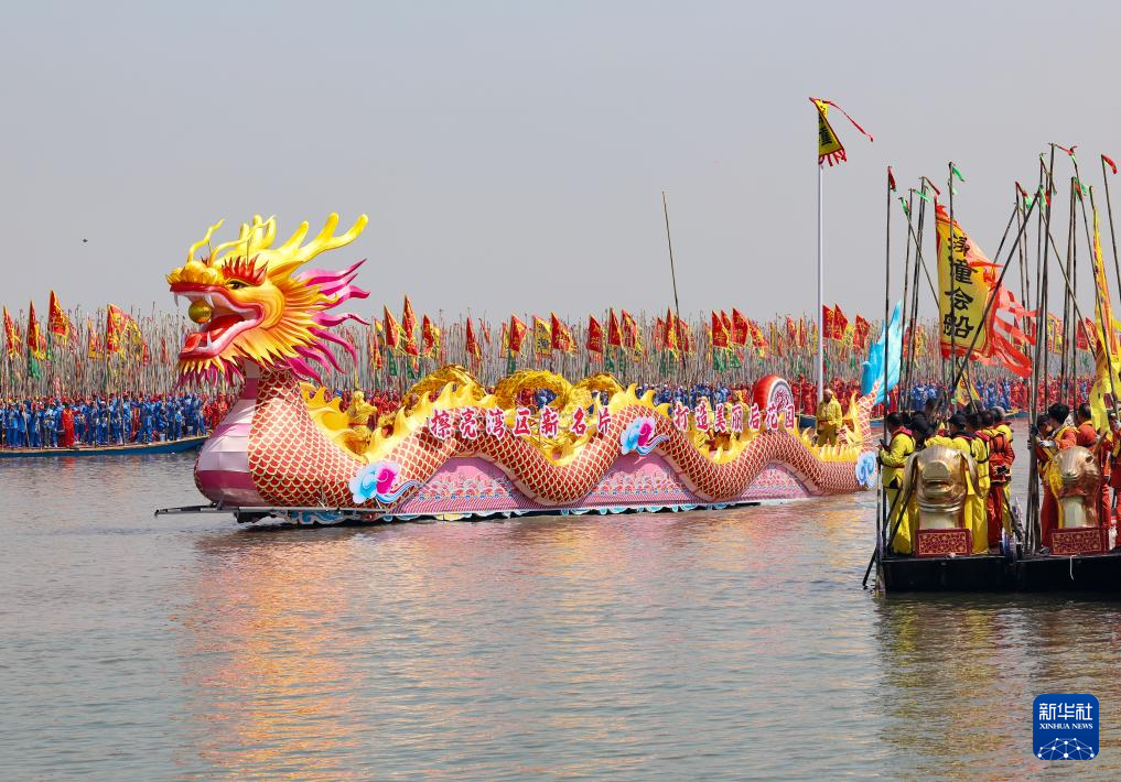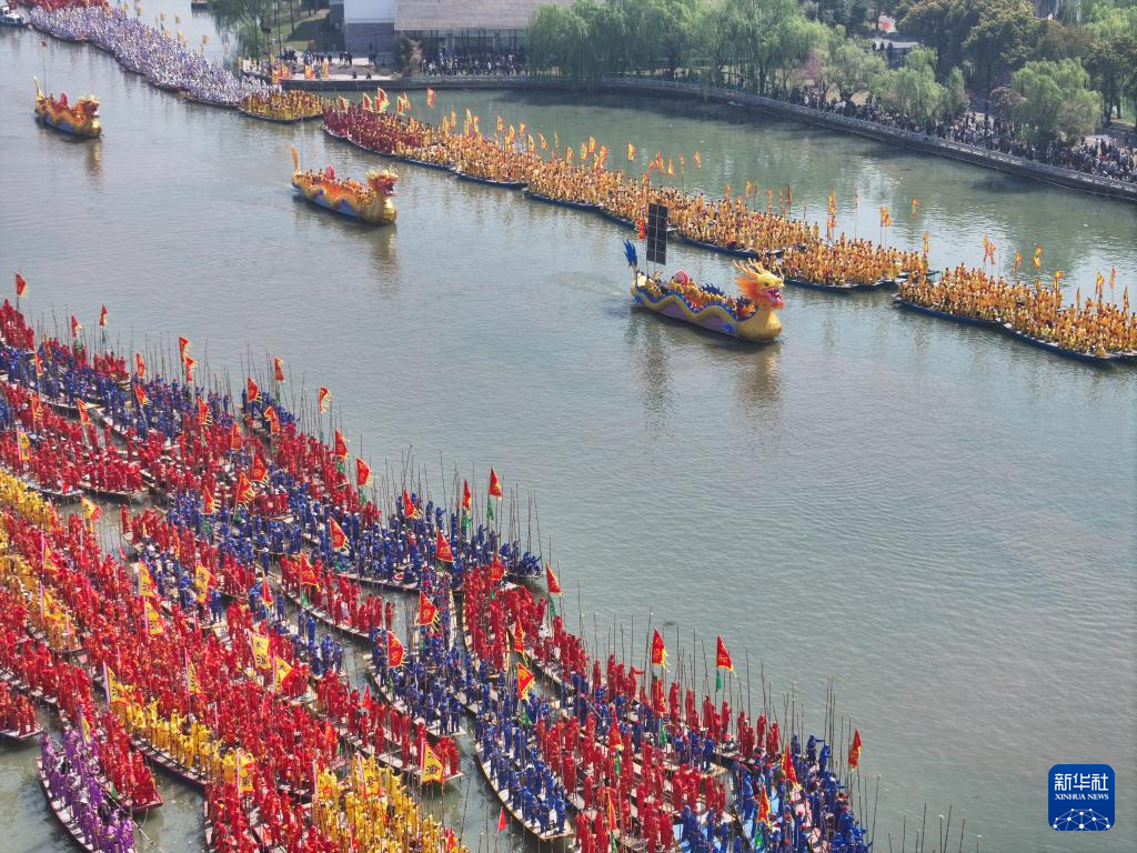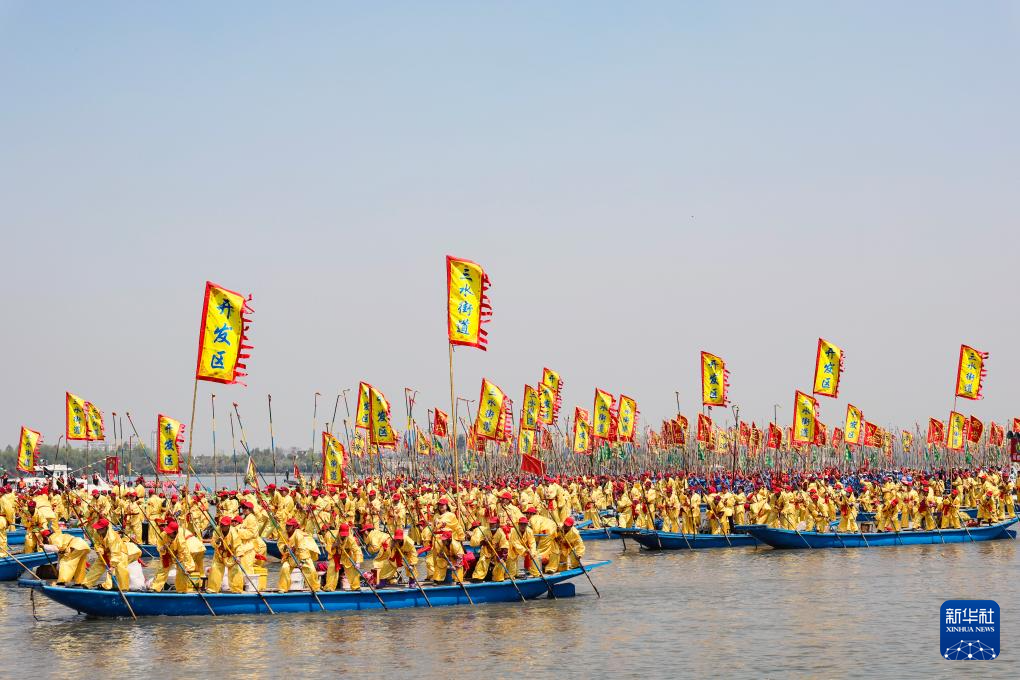 【新華社泰州4月8日】中国江蘇省泰州市姜堰区の溱湖(しんこ)国家湿地公園で6日、伝統のボートレース「泰州姜堰溱潼会船」が開催された。500隻を超えるさまざまな形状の舟と選手1万人以上が参加し、巧みな技を披露した。
