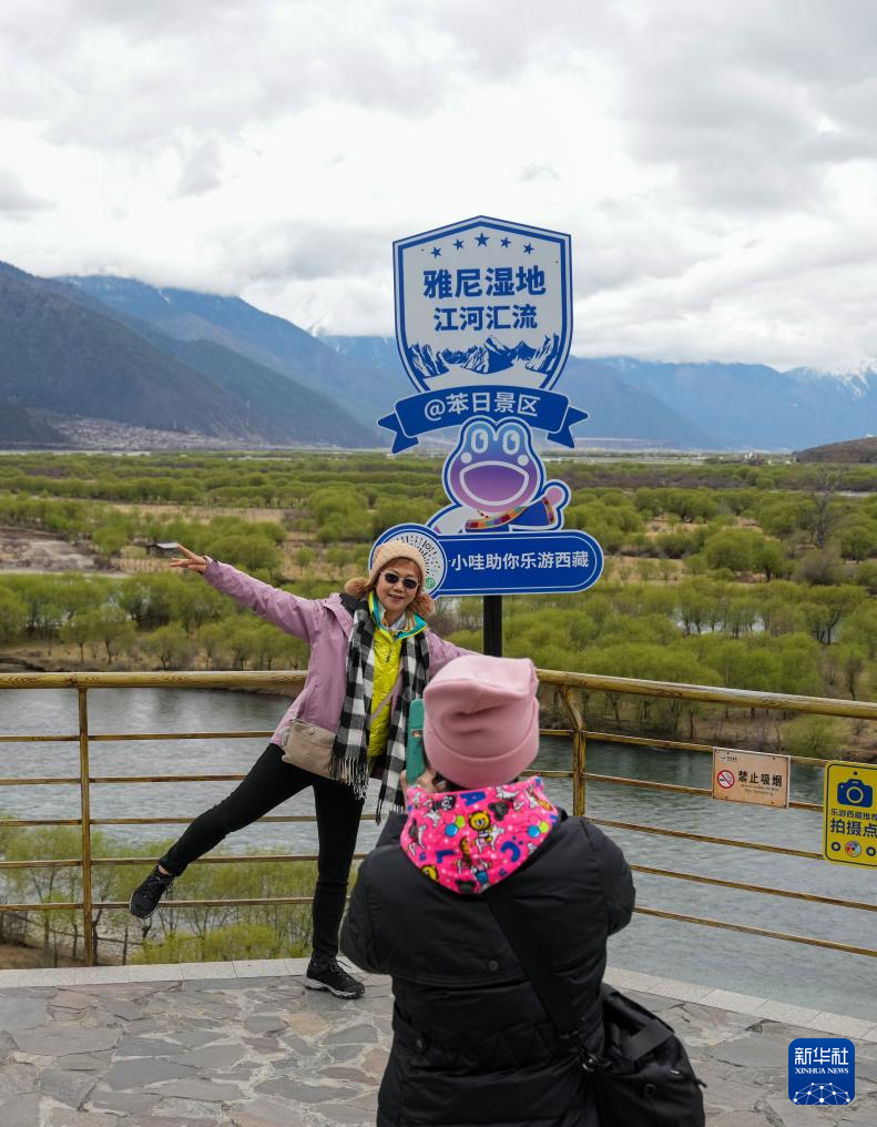 4日、雅尼国家湿地公園の展望台で撮影を楽しむ観光客。(ニンティ=新華社記者/晋美多吉) pagebreak