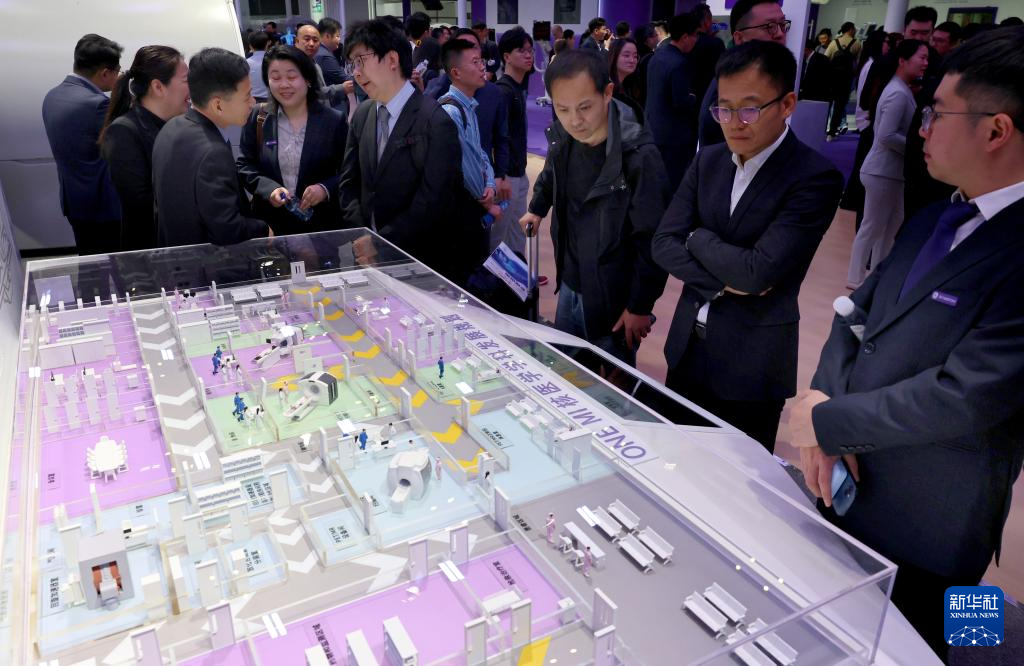 8日、核医学学科発展計画のサンドテーブルを見学する来場者。(上海=新華社記者/方喆)pagebreak