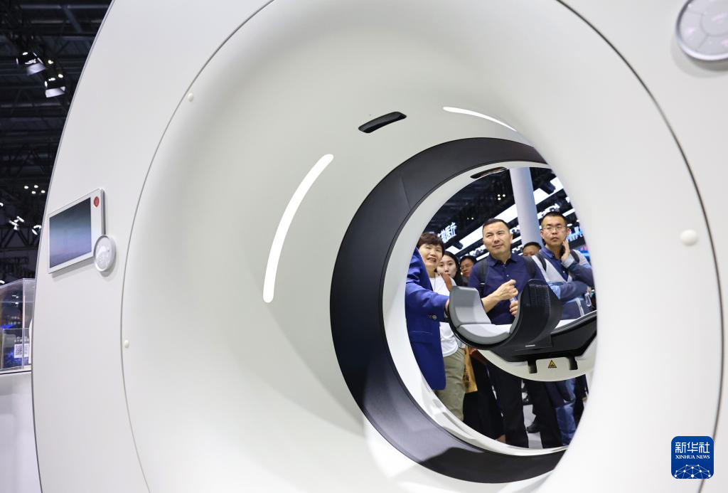 8日、コンピューター断層撮影(CT)装置を見学する来場者。(上海=新華社記者/方喆)pagebreak