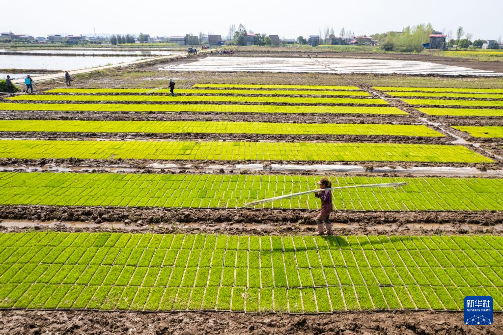 【新華社益陽4月9日】中国湖南省益陽市南県浪抜湖鎮の集中育苗センターではこのところ、農家が水稲の育苗作業に励み、春の農作業に向けた準備を着々と進めている。