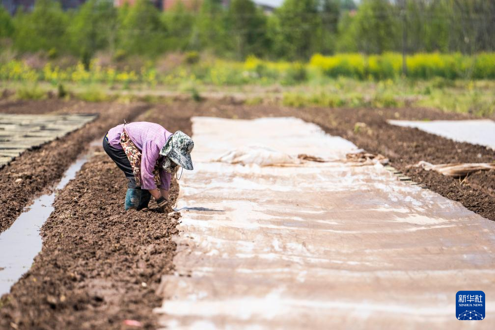 2日、南県浪抜湖鎮集中育苗センターで、苗に日除け用のシートをかける農家の人。(益陽=新華社記者/陳思汗)pagebreak