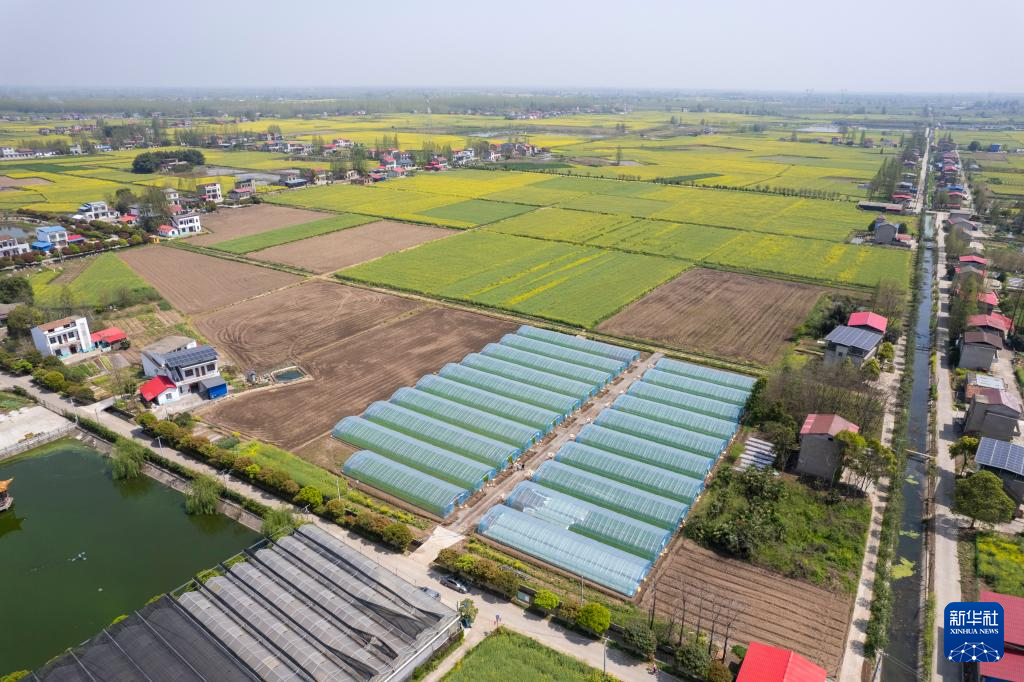 2日、南県浪抜湖鎮集中育苗センターの育苗用ハウス。(ドローンから、益陽=新華社記者/陳思汗)