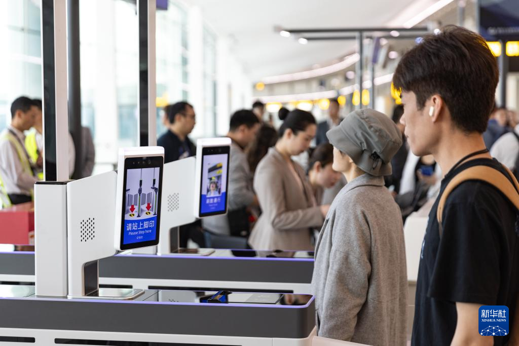 9日、重慶江北国際空港T3Bターミナルビルでセルフ搭乗ゲートに並ぶ旅客。(重慶=新華社記者/黄偉)