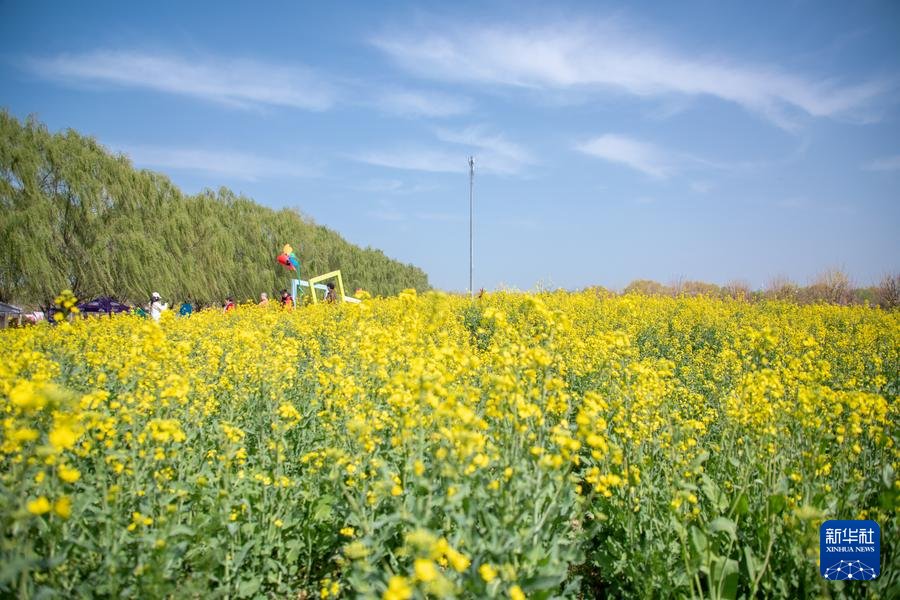 【新華社新郷4月10日】中国河南省新郷市封丘県の黄河沿いに広がる広大な畑で菜の花が見頃を迎えた。第9回菜の花エコ観光フェスティバルも開幕し、大勢の観光客が春を満喫している。(記者/薛臣)