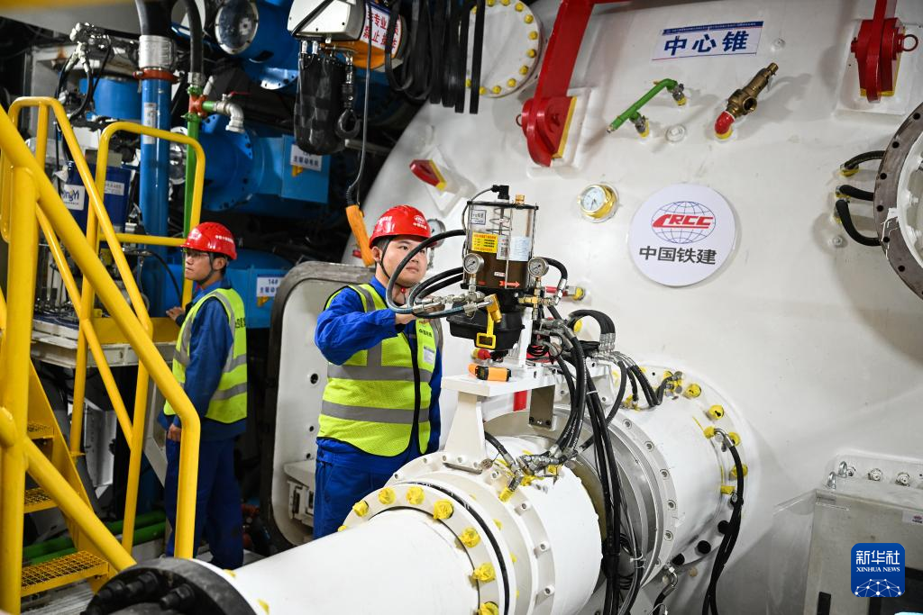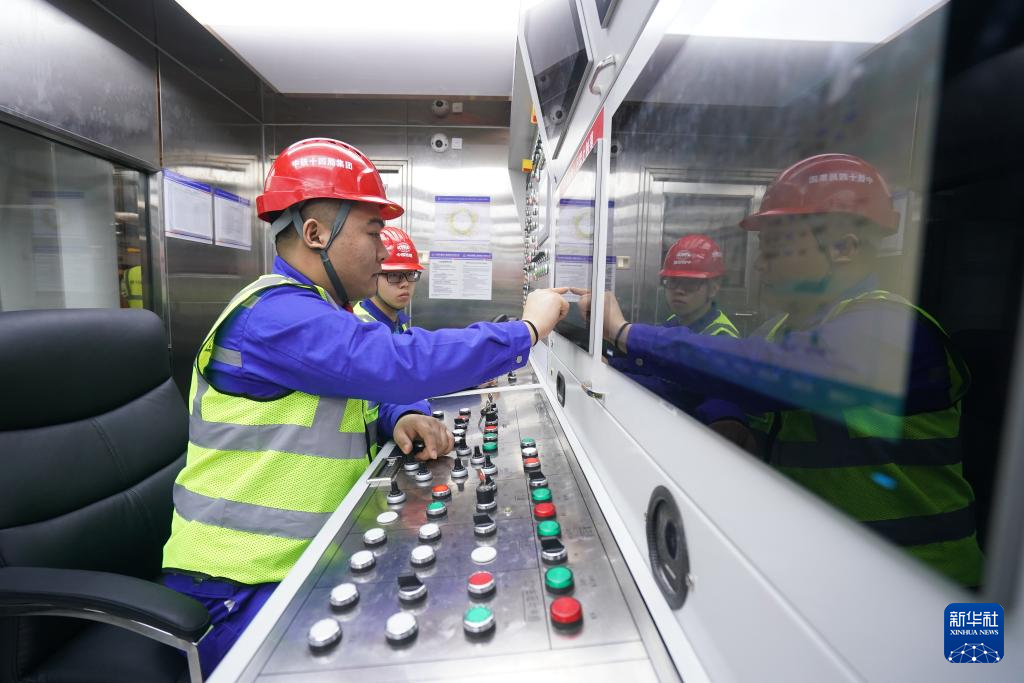9日、シールドマシンの操作室内で作業をする技術者。(南通=新華社記者/季春鵬)