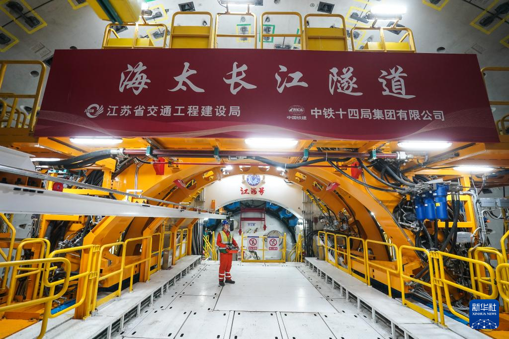 【新華社南通4月11日】中国鉄道建設大手、中国鉄建傘下の中鉄十四局集団が江蘇省で建設を担う道路水底トンネル「海太長江トンネル」は9日、長江を横断するシールド掘削工事が河口の同省南通市海門区で始まった。