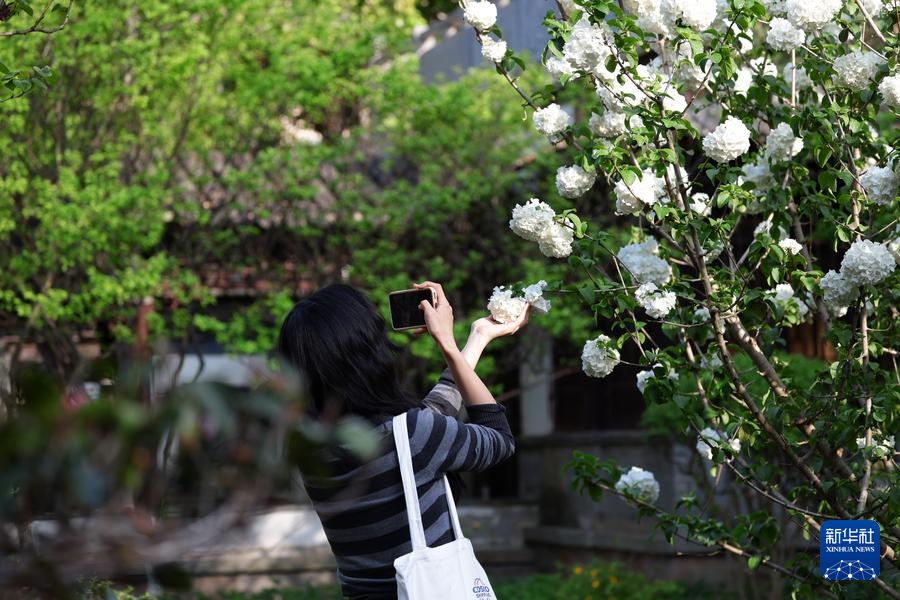 【新華社南京4月11日】中国江蘇省南京市の莫愁湖公園でカイドウ、コウシンバラ、アジサイなどが満開となった。花と湖の風景を楽しもうと多くの市民や観光客が訪れている。
