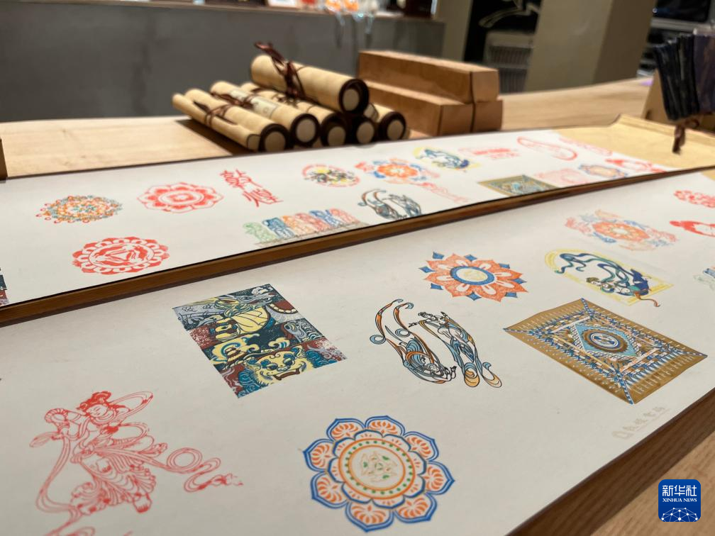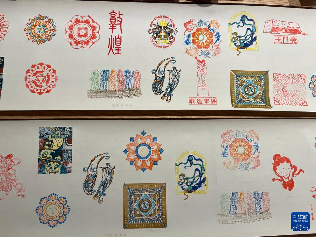 敦煌文化にまつわるさまざまな図案。(3月24日撮影、敦煌=新華社記者/張玉潔)