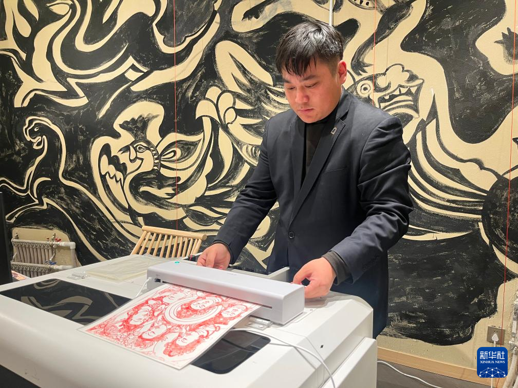 作品を印刷する敦煌印局のスタッフ。(3月24日撮影、敦煌=新華社記者/張玉潔)