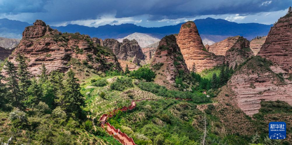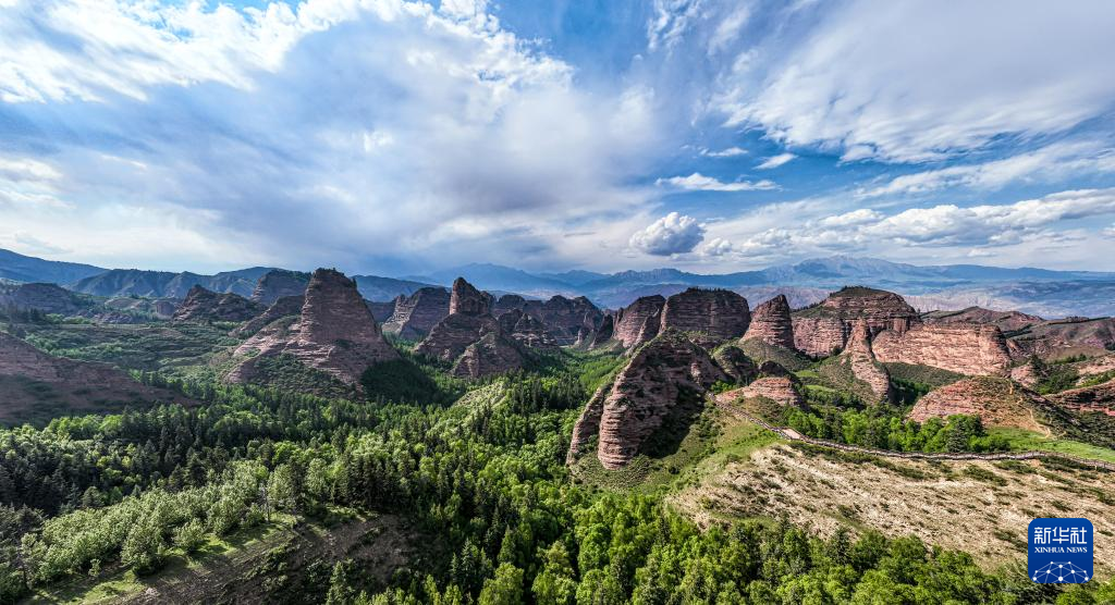 2023年6月9日、青海省のカンブラー世界ジオパークの景色。(ドローンから、西寧=新華社配信/羊格東智)