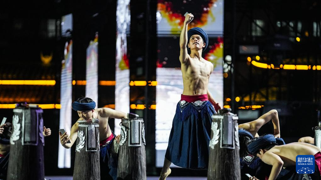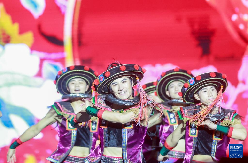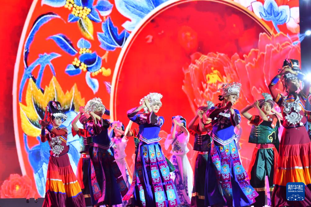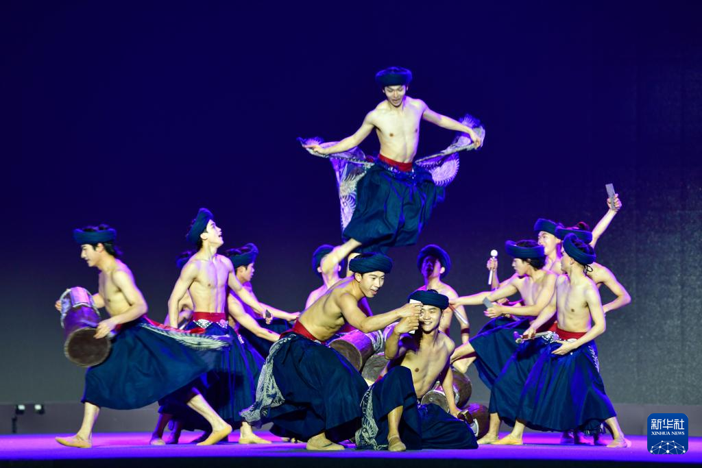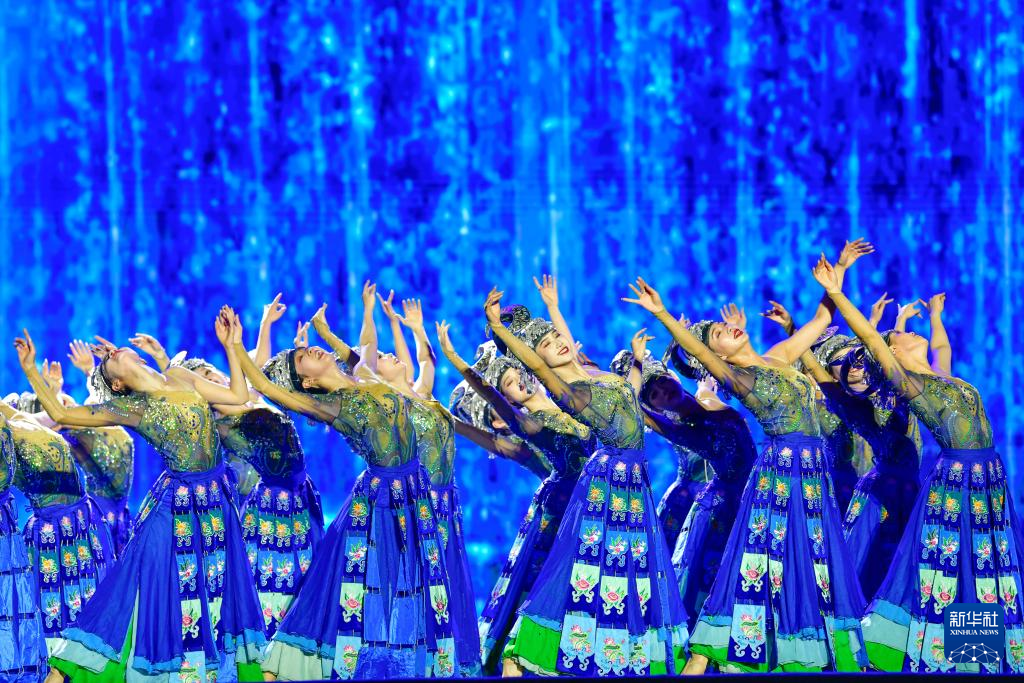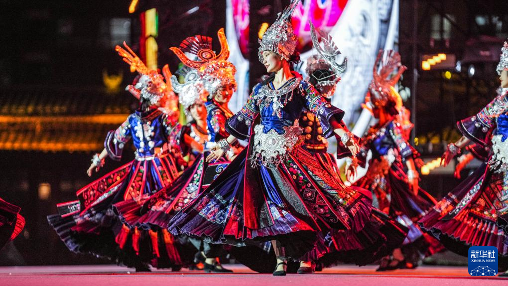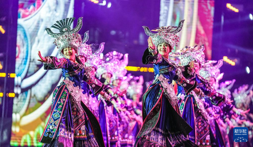 11日、ミャオ族姉妹祭の開幕式で披露された演目。(台江=新華社記者/陶亮)