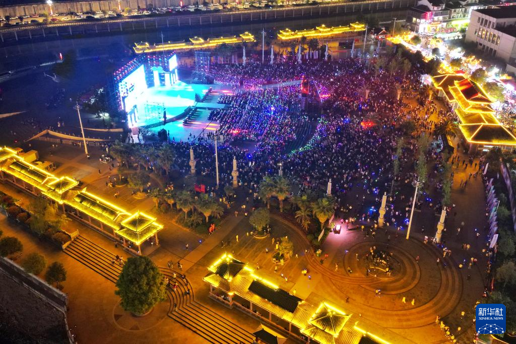 11日、ミャオ族姉妹祭の開幕式。(ドローンから、台江=新華社記者/劉続)
