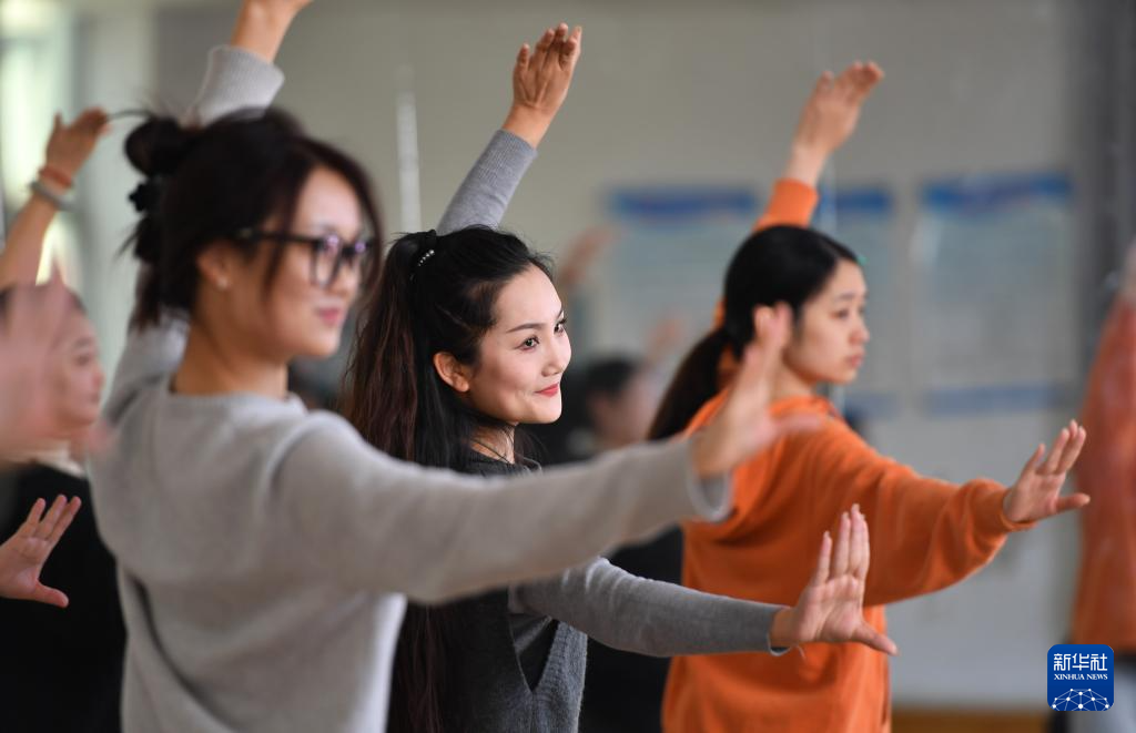 演目のリハーサルをする常徳絲弦芸術劇院の若手演者たち。(3月18日撮影、常徳=新華社記者/趙仲志)