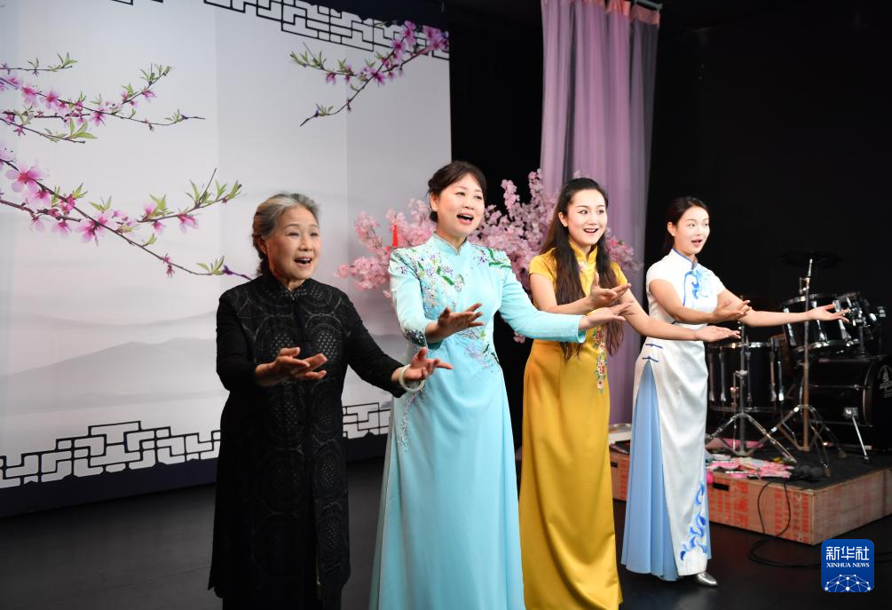 【新華社常徳4月18日】中国湖南省常徳市鼎城区にある常徳絲弦芸術劇院には現在、「50後」(1950年代生まれ)から「90後」(1990年代生まれ)まで、幅広い世代の「常徳絲弦」演者が所属している。1950年代生まれの常徳絲弦の名手、宋潔(そう・けつ)さん、60年代生まれの常徳絲弦の代表的伝承者の朱暁玲(しゅ・ぎょうれい)さん、および常徳絲弦の若手伝承者、伍恩禹(ご・おんう)さんに代表される80年代生まれと、謝顔竹(しゃ・がんちく)さんに代表される90年代生まれの若手演者たちで、同じチームに所属する幅広い世代の芸術家たちが、世代を超えて伝統を受け継ぎ、常徳絲弦という地元の優れた伝統芸能を共に守り伝えている。