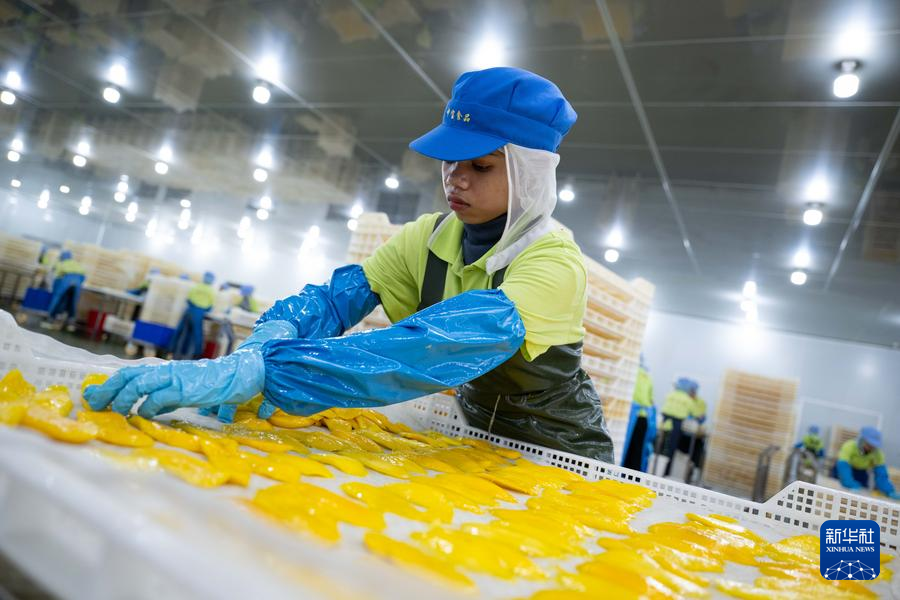 福建省の食品メーカー、中宝食品科技がカンボジア南部のコンポンスプー州に建てたドライマンゴー工場では、従業員たちがきめ細かい作業により、新鮮なマンゴーをもちもちの甘いドライマンゴーに加工している。出来上がったドライマンゴーは海路で福建省に運ばれ、漳州市平和県にある中宝(福建)食品科技での仕分け、包装、箱詰めを経て、数日で中国市場のさまざまな販路で売りに出される。pagebreak