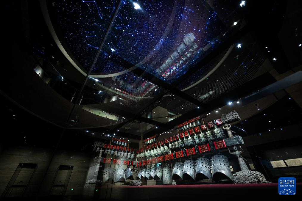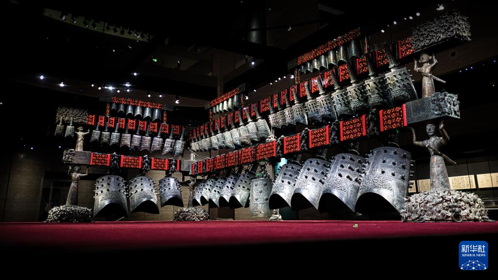 17日、湖北省博物館で展示されている随州曽侯乙編鐘。(武漢=新華社記者/肖芸九)