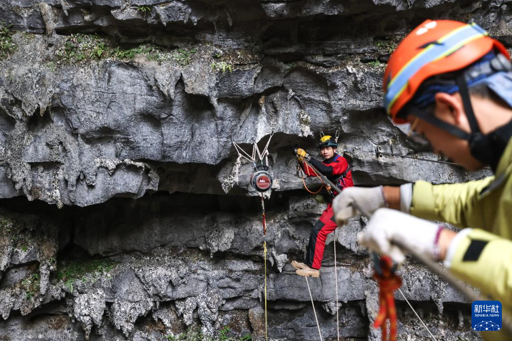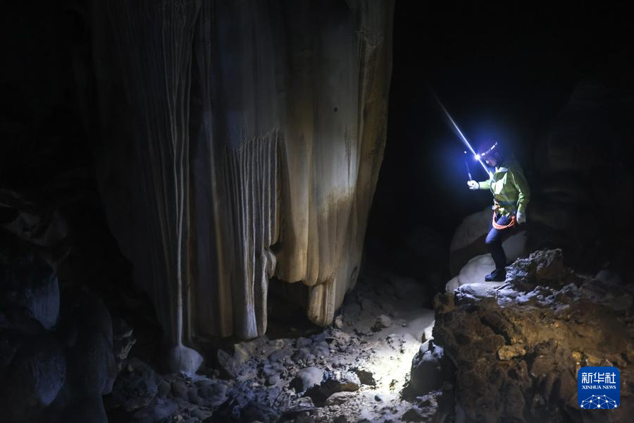 平塘県にある洞窟「平塘天硐」を探検する観光客。(2月19日撮影、貴陽=新華社記者/欧東衢)
