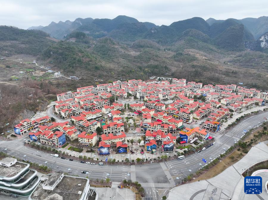 平塘県「天文小鎮」の風景。(2月18日、ドローンから、貴陽=新華社記者/欧東衢)