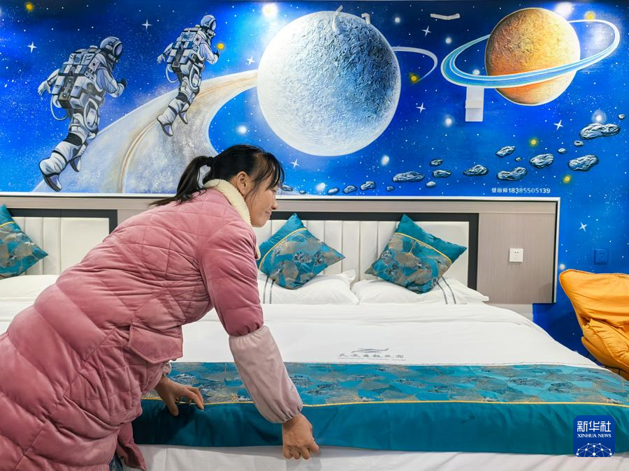 平塘県の「天文小鎮」にある天文体験館を見学する観光客。(2月18日撮影、貴陽=新華社記者/欧東衢)