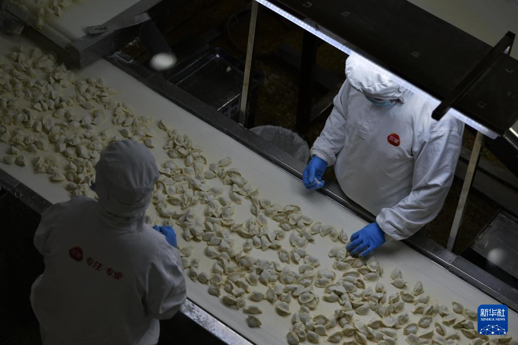 河南省鄭州市の企業、三全食品の工場で働く従業員。(2024年12月25日撮影、鄭州=新華社記者/刘力航)