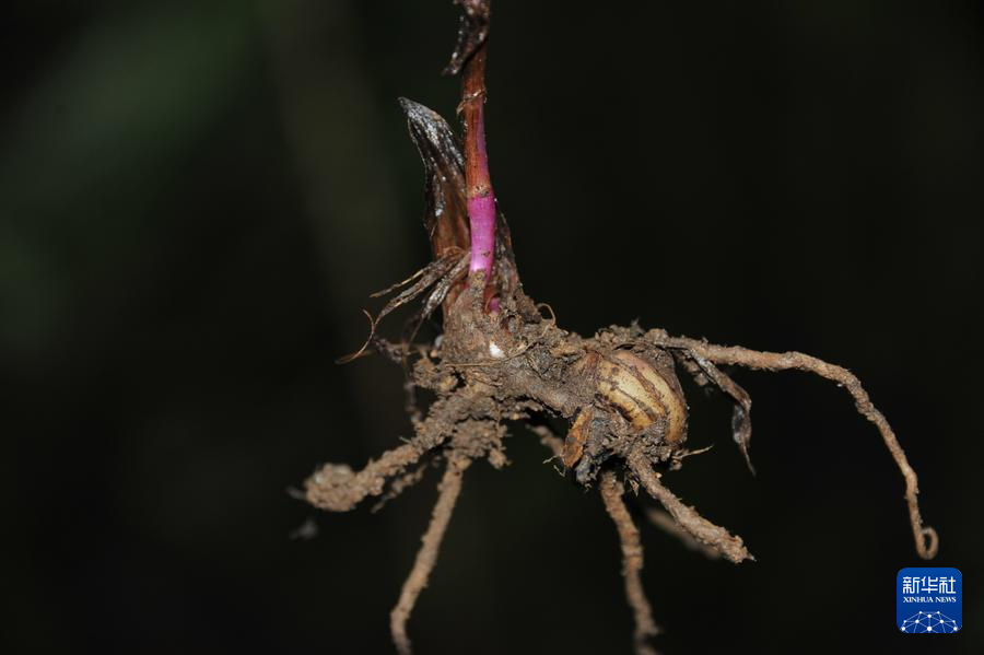 貴州省の寛闊水国家級自然保護区で発見されたモイワランの根茎。(貴陽=新華社配信/呉偉)