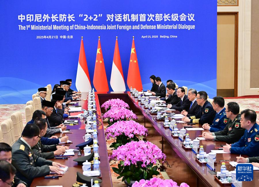 【新華社北京4月22日】中国の王毅(おう・き)共産党中央政治局委員・外交部長と董軍(とう・ぐん)国防部長は21日、インドネシアのスギオノ外相、シャフリ国防相と共同議長を務め、北京で両国外相・国防相「2プラス2」対話メカニズム第1回会議を開いた。