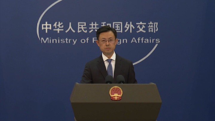 23日、記者会見に臨む中国外交部の郭嘉昆報道官。(北京=新華社配信)