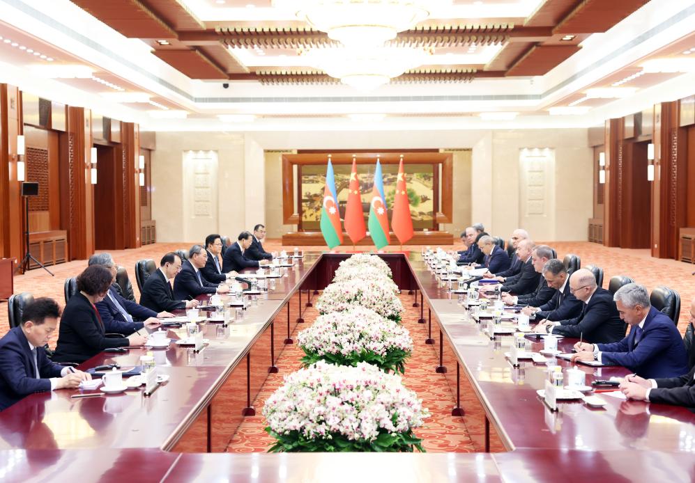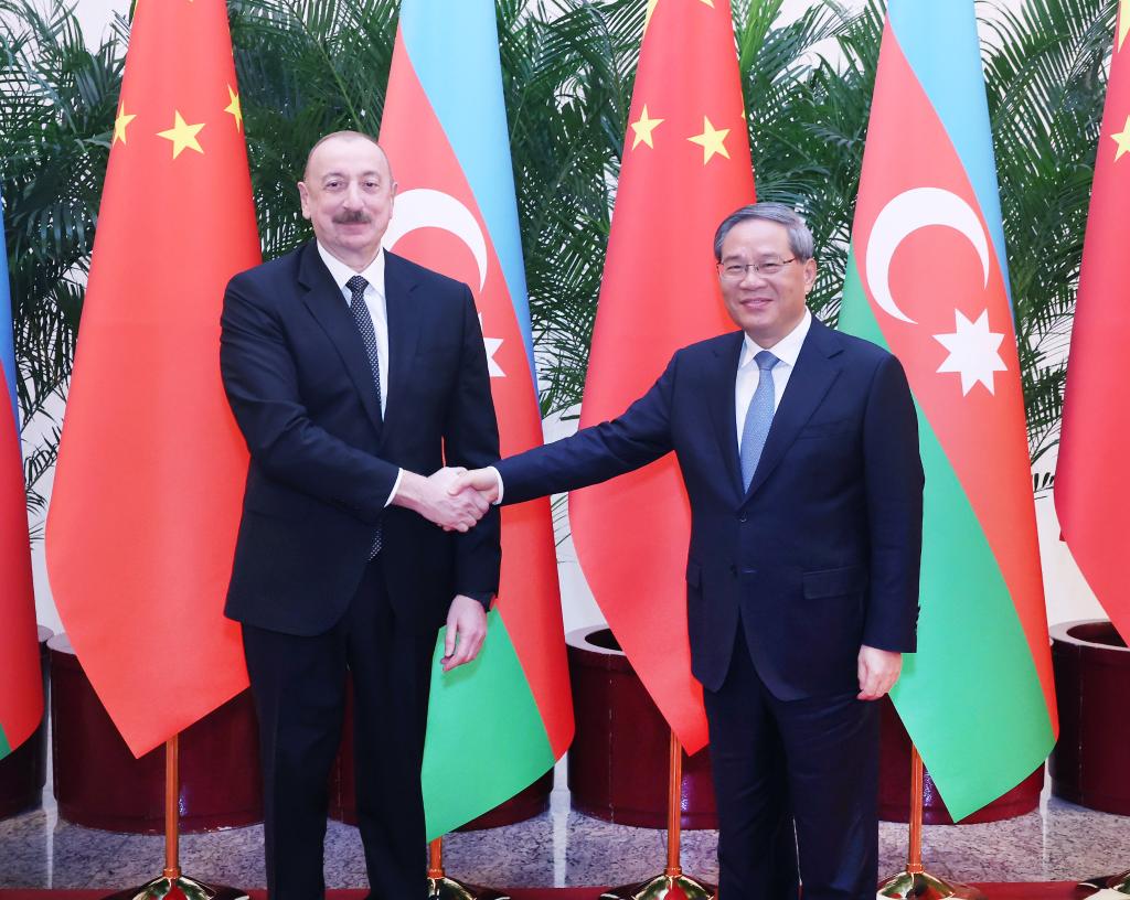 中国の李強(り・きょう)国務院総理は23日午後、国賓として訪中したアゼルバイジャンのアリエフ大統領と北京の人民大会堂で会談した。(北京=新華社記者/劉衛兵)