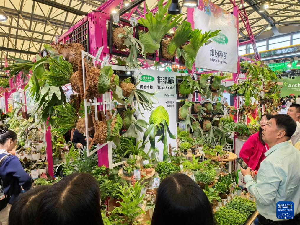 中国国際花卉園芸展覧会で展示されたさまざまな観葉植物。(4月10日撮影、上海=新華社記者/呉宇)