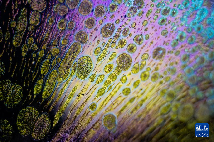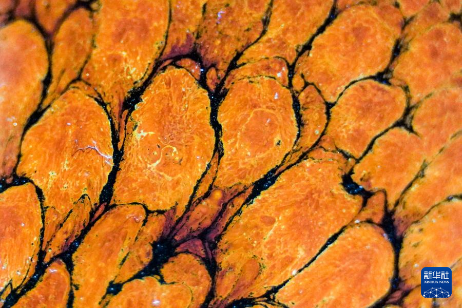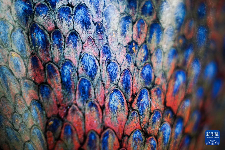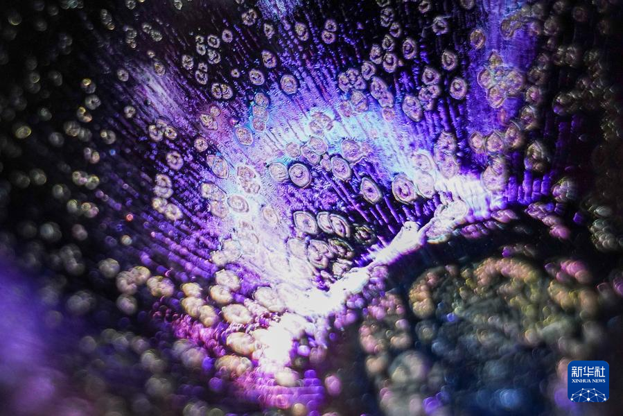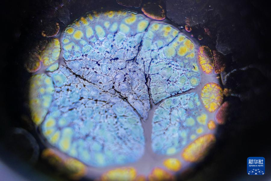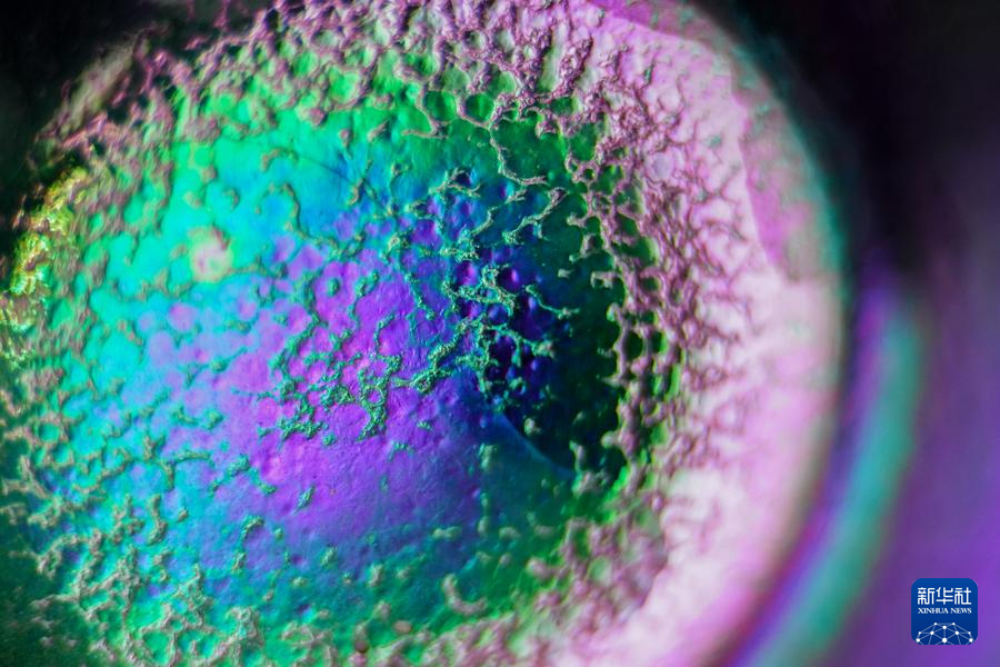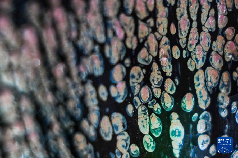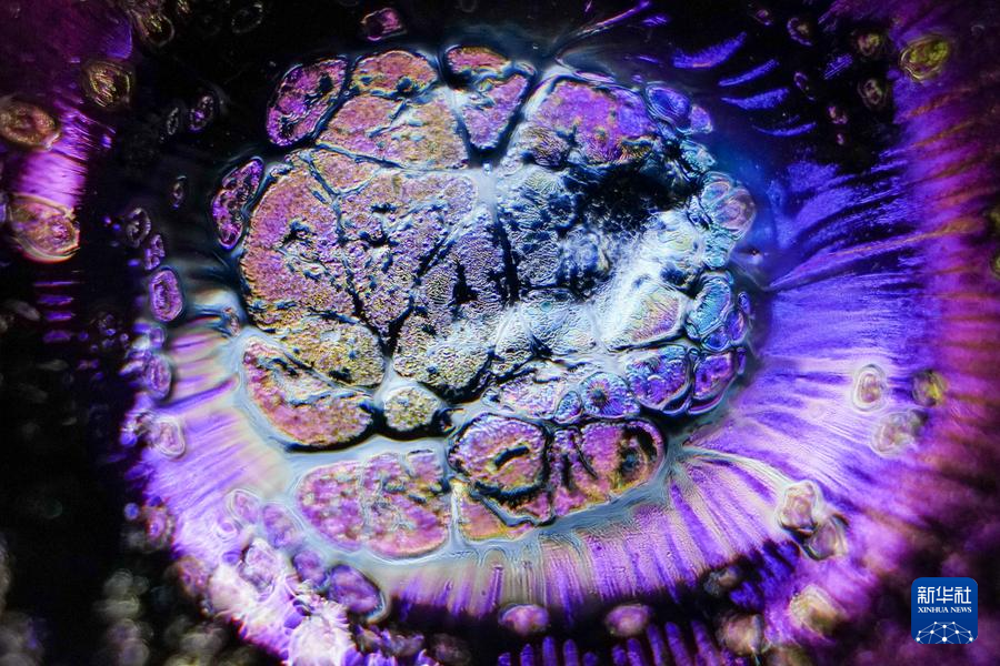【新華社福州4月25日】中国福建省に伝わる天目茶わん「建盞(けんさん)」は宋代八大名磁器の一つで、黒釉磁器の手本とされる。独創的な工夫を凝らした焼成技法、粘土と火が起こす物理化学的反応が、この類いまれな宝を生み出す。マクロレンズを通して見る建盞は、幻想的な模様が鮮やかに浮かび、息をのむほど美しい。