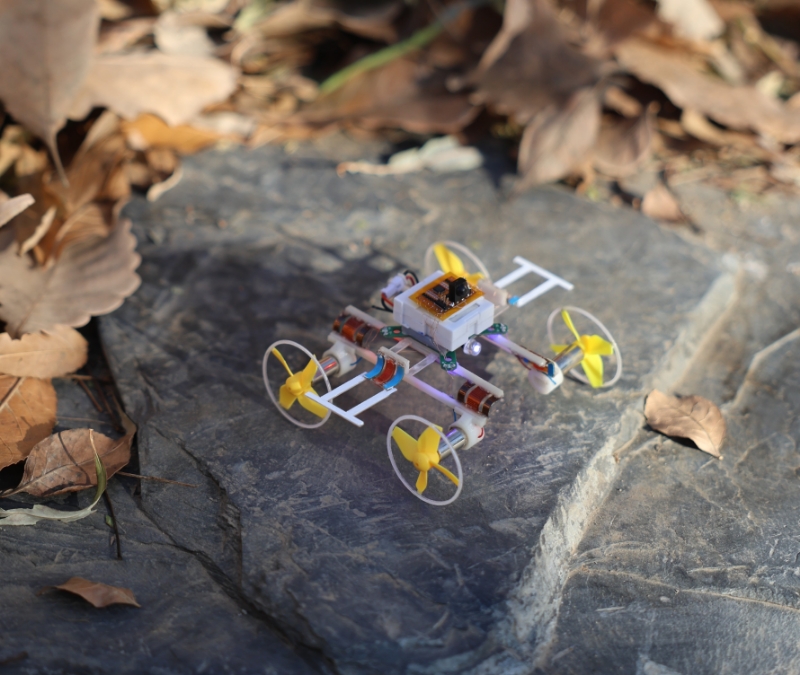 張氏によると、新型アクチュエーターは優れた変形能力と形態維持機能を備え、電気制御によって連続的な変形と任意形態の維持を実現できる。従来の小型アクチュエーターでは難しかった特性であり、新型アクチュエーターを搭載した小型陸空両用ロボットは、変形によって地上走行や空中飛行ができ、地上での最高速度は秒速1・6メートルに達した。