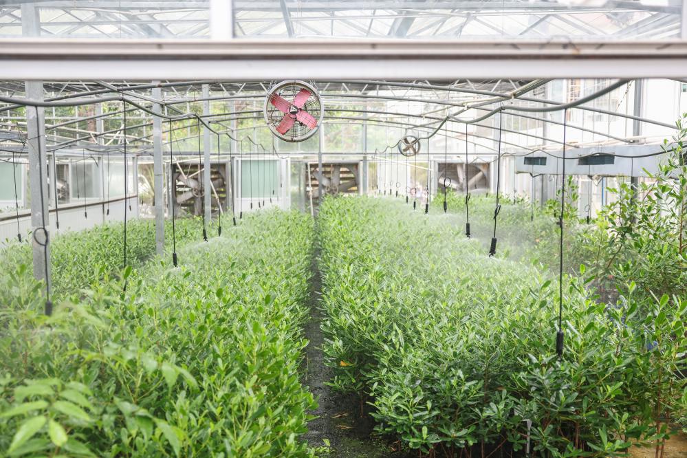 三亜市林業科学研究院の温室ハウスで生育するアカバナヒルギモドキの幼苗。(4月10日撮影、海口=新華社記者/張麗蕓)