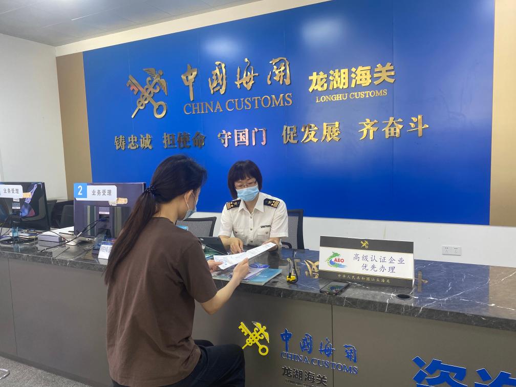 RCEP原産地証明書を発給する広東省汕頭税関の職員。(資料写真、汕頭=新華社配信)