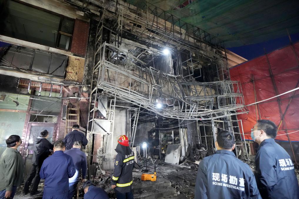 29日、遼寧省遼陽市白塔区の火災現場。(遼陽=新華社記者/李鋼)