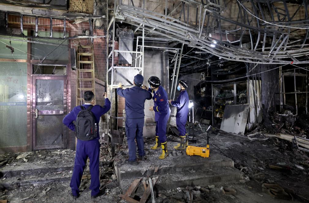 29日、遼寧省遼陽市白塔区の火災現場。(遼陽=新華社記者/楊青)