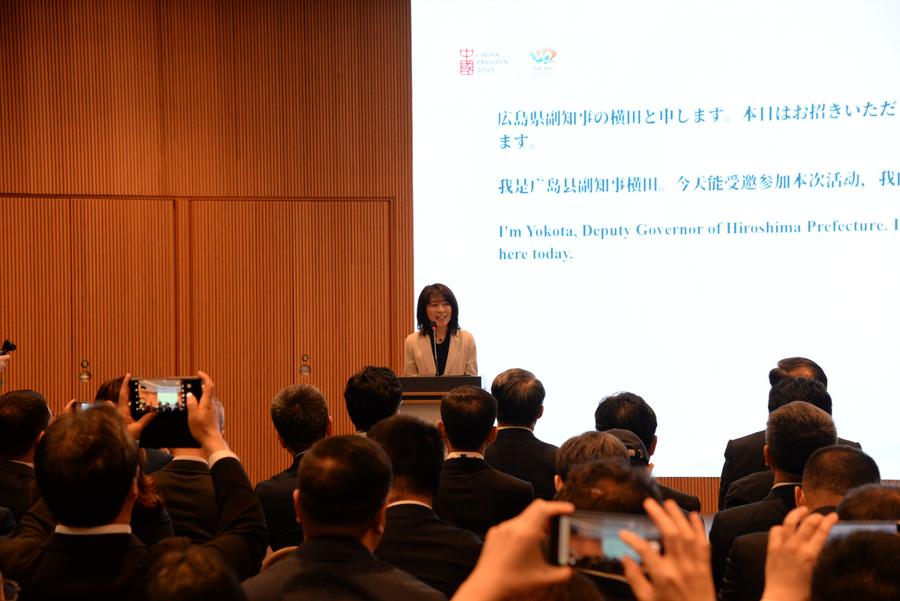 28日、開幕式であいさつする、四川省と友好提携を締結している広島県の横田美香副知事。(大阪=新華社記者/涂一帆)