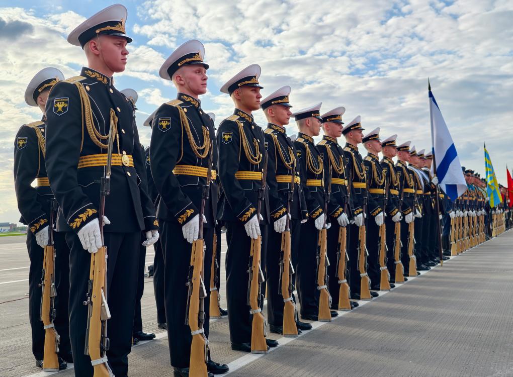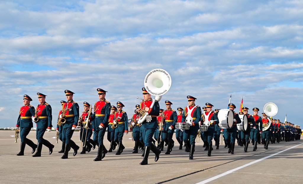 7日、空港で習近平主席の到着を歓迎する儀仗隊。(モスクワ=新華社記者/丁海濤)