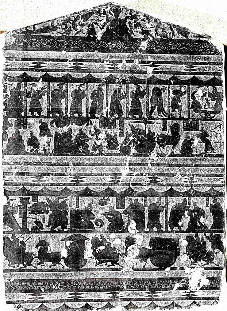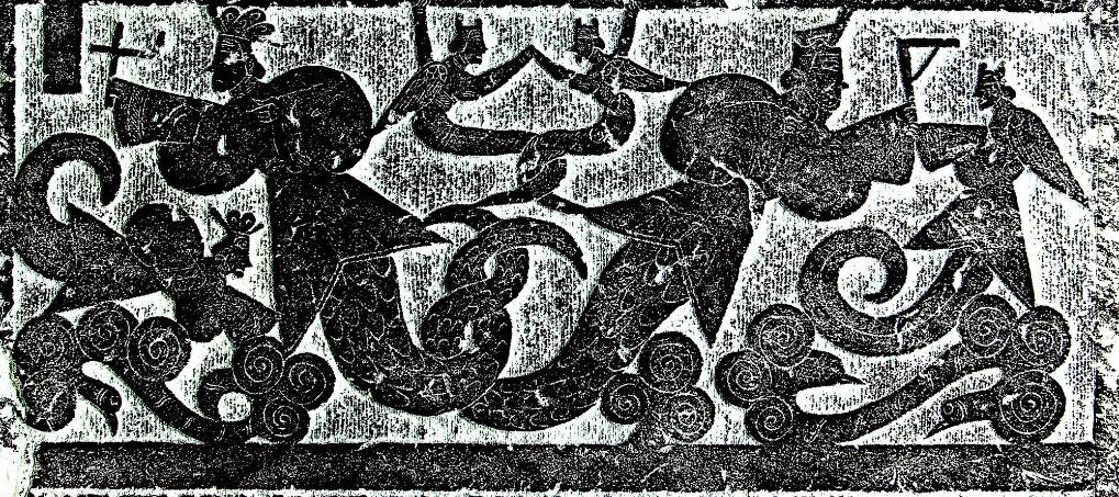 武氏墓群石刻の漢画像石「古代帝王図」。(曲阜=新華社配信)