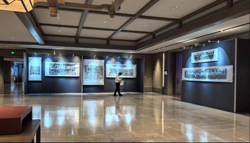 「石上史詩・対話千年-武氏祠漢画石刻拓片展」の展示ホール。(曲阜=新華社配信)