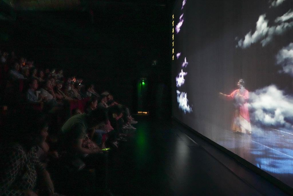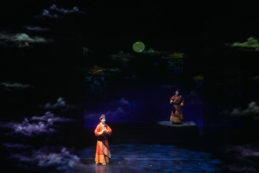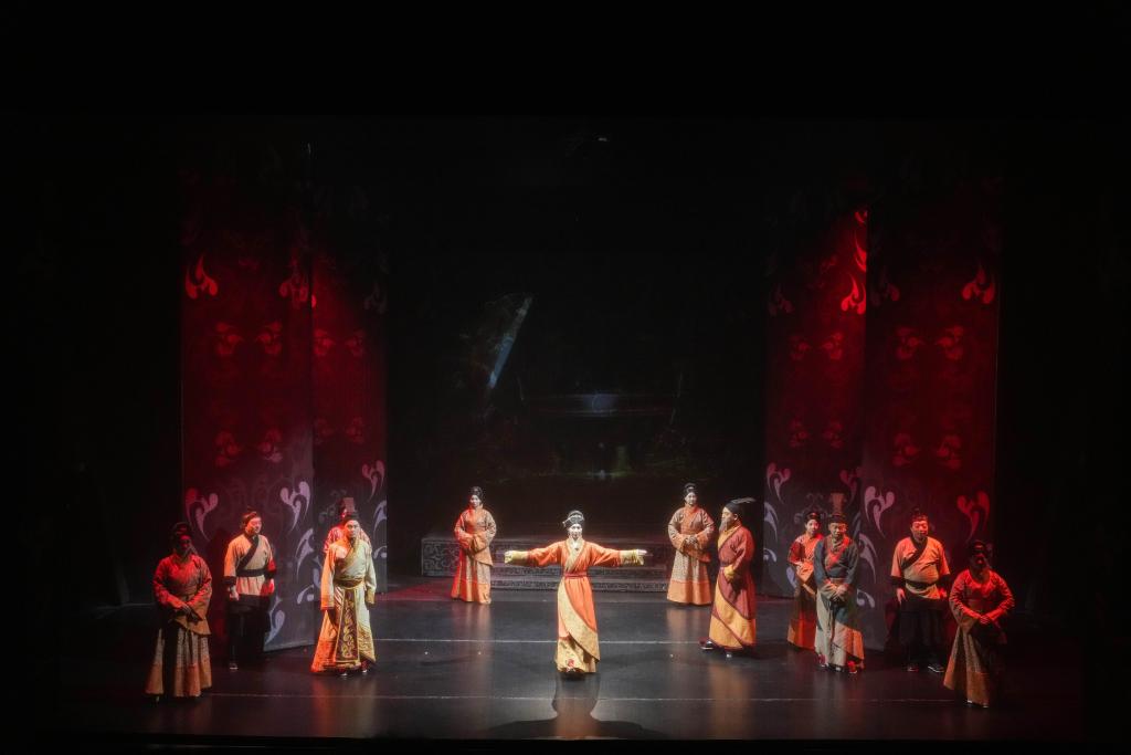 湖南博物院で行われた京劇公演「一念・辛追夢」の一場面。(4月26日撮影、長沙=新華社記者/薛宇舸)