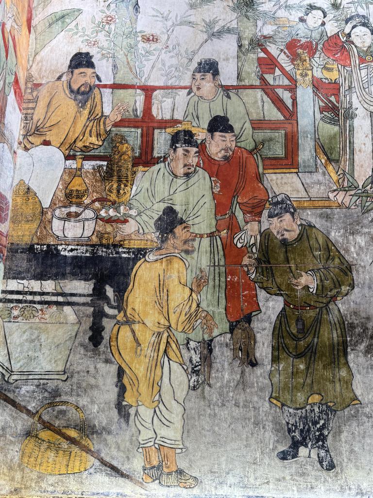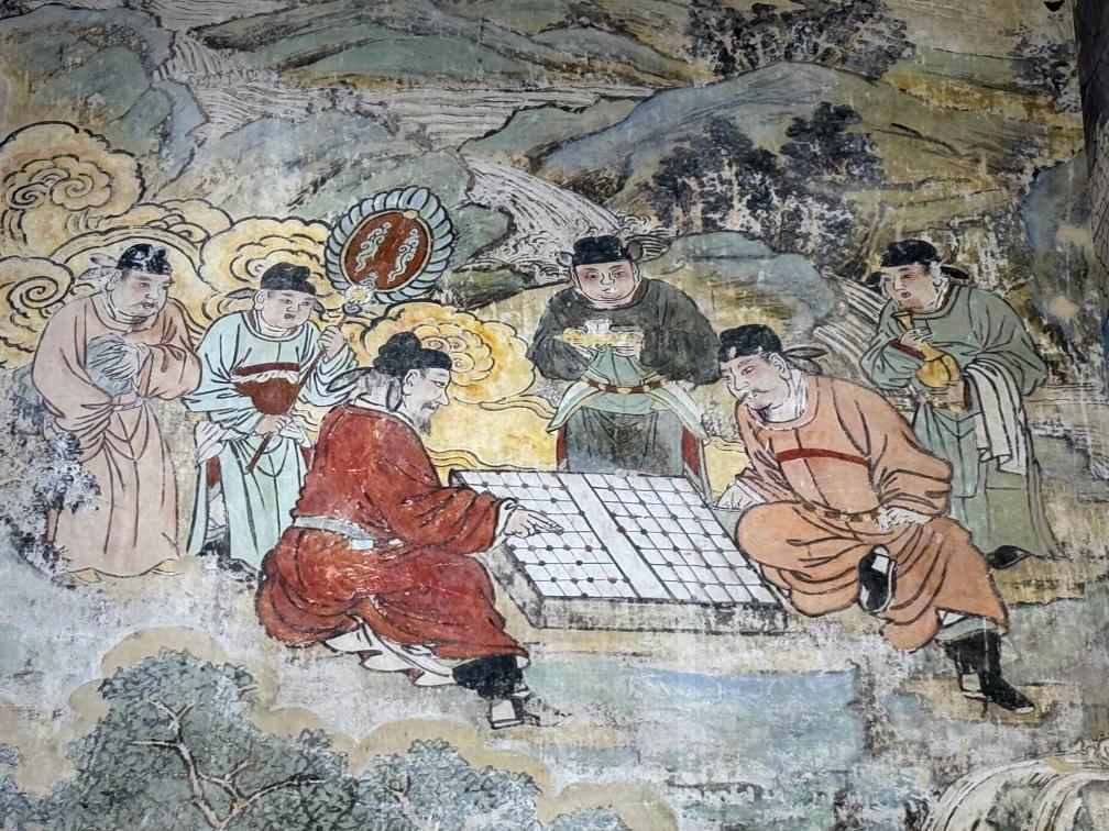 3日、広勝寺の元代壁画「対弈(たいえき)図」。(太原=新華社記者/王学濤)