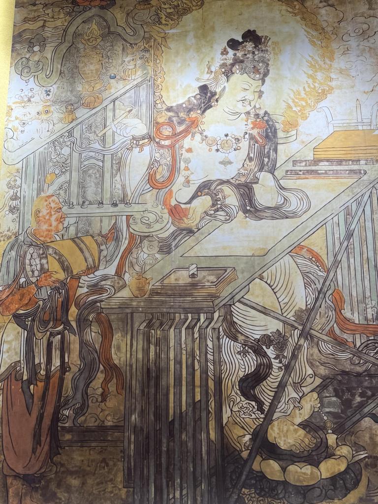 3日、米国に流出した広勝寺の元代壁画「文殊伏案図」。(太原=新華社記者/王学濤)