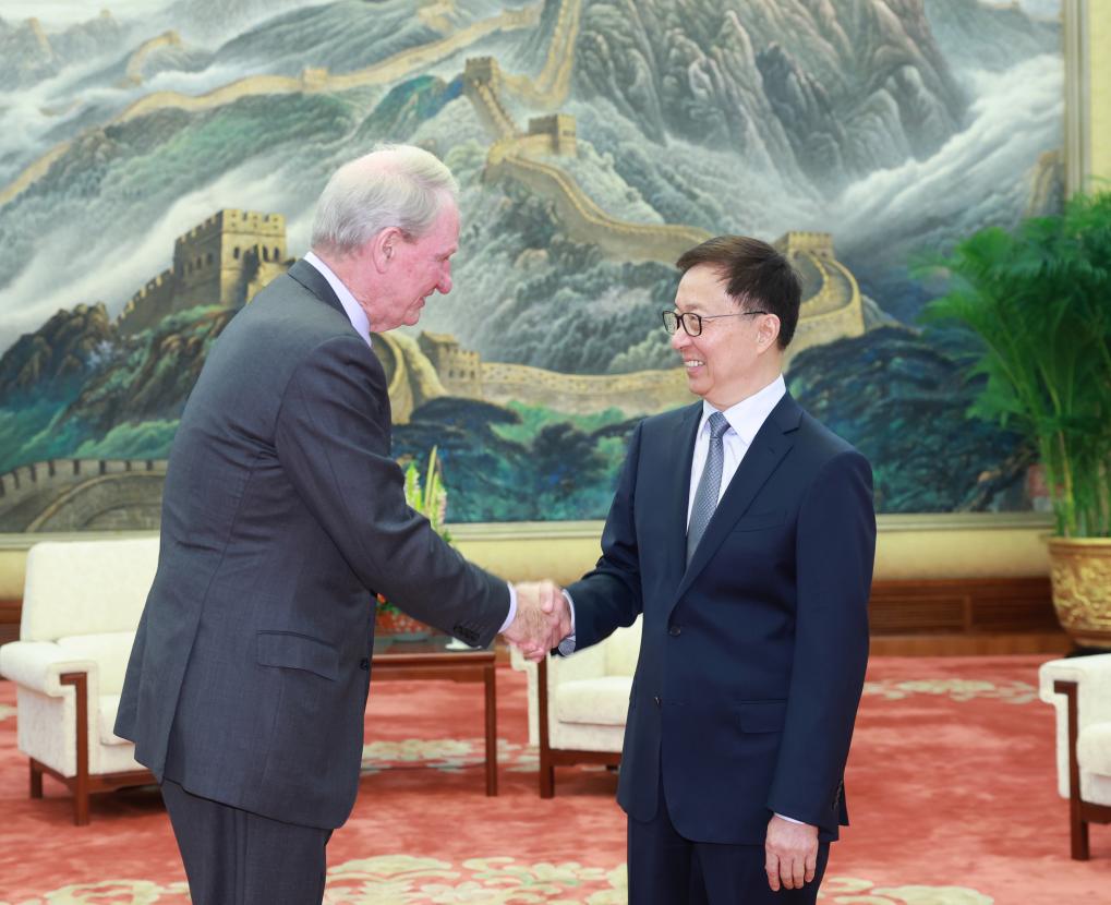 中国の韓正(かん・せい)国家副主席は16日、米資産運用会社インベスコ・グループのリチャード・ワゴナー会長と北京で会見した。(北京=新華社記者/王曄)