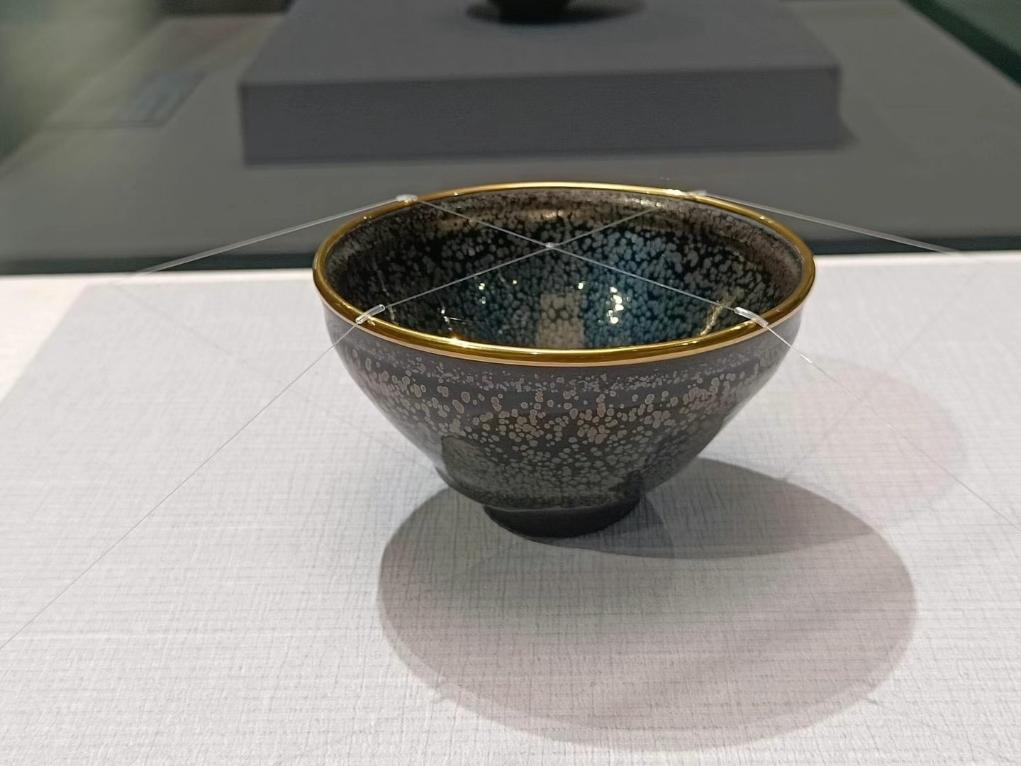 大阪市立東洋陶磁美術館が所蔵する、日本の国宝指定を受けた宋代の油滴天目茶わん。(資料写真、大阪=新華社配信)