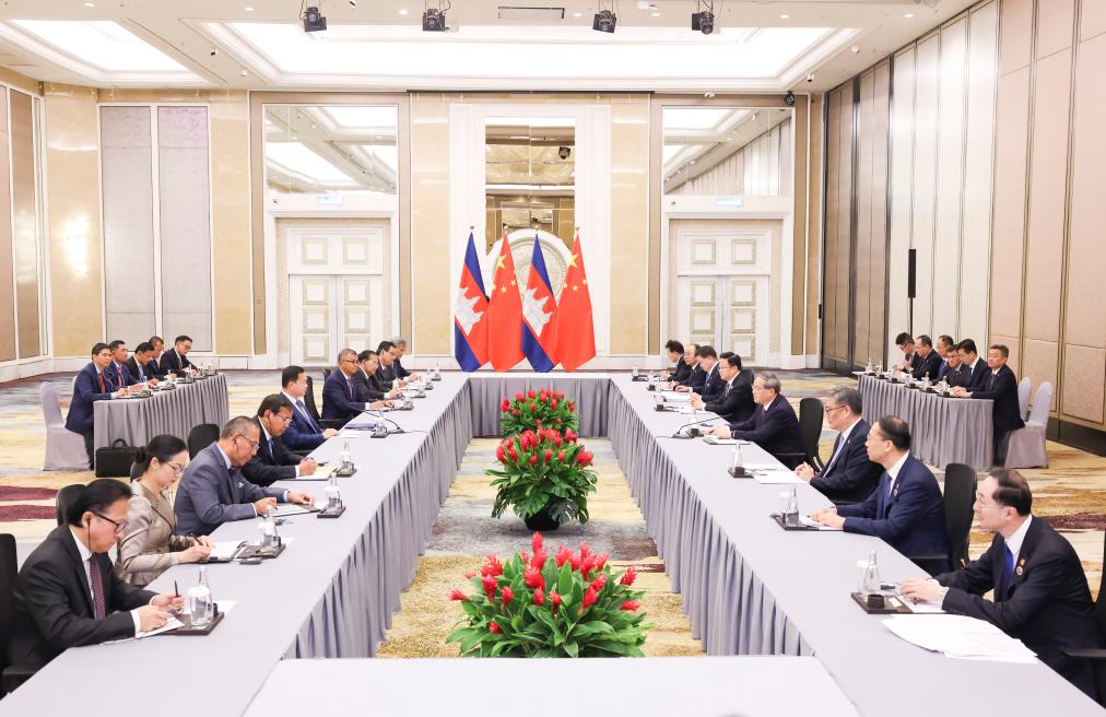 中国の李強(り・きょう)国務院総理は27日午前、東南アジア諸国連合(ASEAN)・中国・湾岸協力会議(GCC)サミット出席のため訪れたマレーシアのクアラルンプールで、カンボジアのフン・マネット首相と会談した。(クアラルンプール=新華社記者/龐興雷)