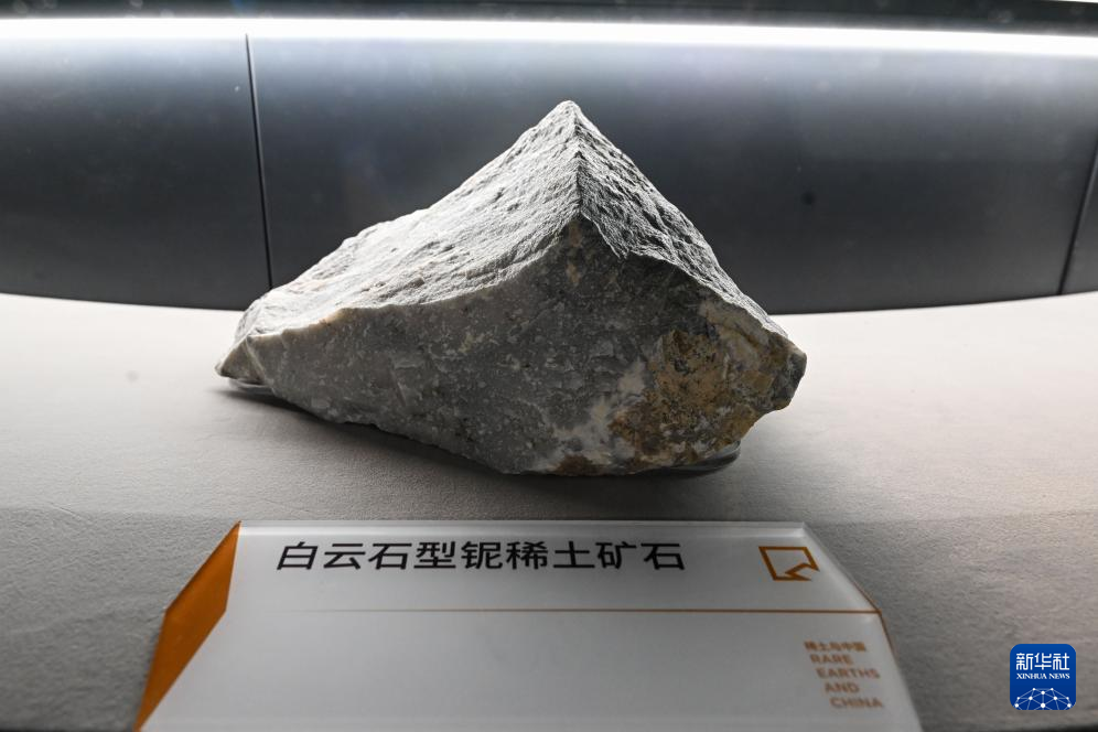 内モンゴル自治区包頭市の包頭希土博物館に展示されているレアアース鉱石。(2024年5月10日撮影、包頭=新華社記者/李志鵬)